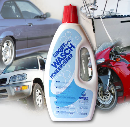 GROJET Wasch-Konservierer enthält Wachsanteile, die auf Lack haften und diesen bis zur nächsten Wagenwäsche zusätzlich schützen. Dieser Schutz ist überall dort, wo auch Regen- und Schneewasser hinkommen, z. B. Ritzen, Kanten, hinter Zierleisten, Stoßstangen usw.